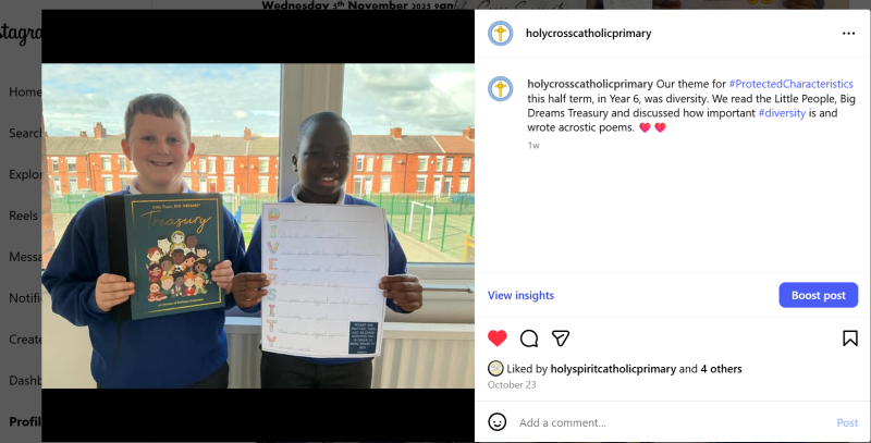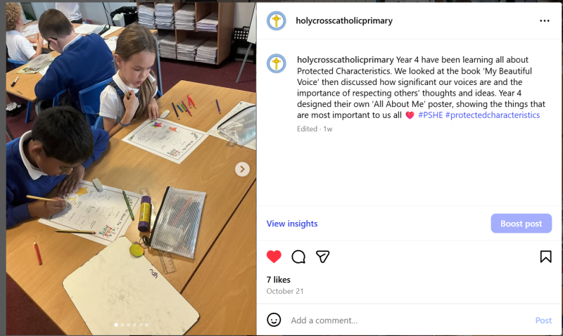 At Holy Cross, it is our intent that all children will be ‘lifelong learners’ with the confidence and ability to develop their skills and understanding when having new experiences, meeting new challenges and finding themselves in unfamiliar situations. Our approach aims to develop the qualities and attributes children need to thrive as individuals, family members and members of society and the global community. Our intention is for children to leave Holy Cross with the knowledge, understanding and emotional intelligence to be able to play an active role in society. We want our children to desire, and have the skills needed, to build positive, respectful relationships with other people, including those who have different beliefs, religions and life choices. Ultimately, our children will have high aspirations and an unfaltering belief in themselves and of their self-worth. |
